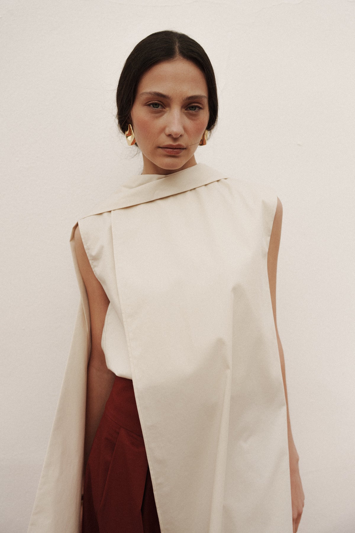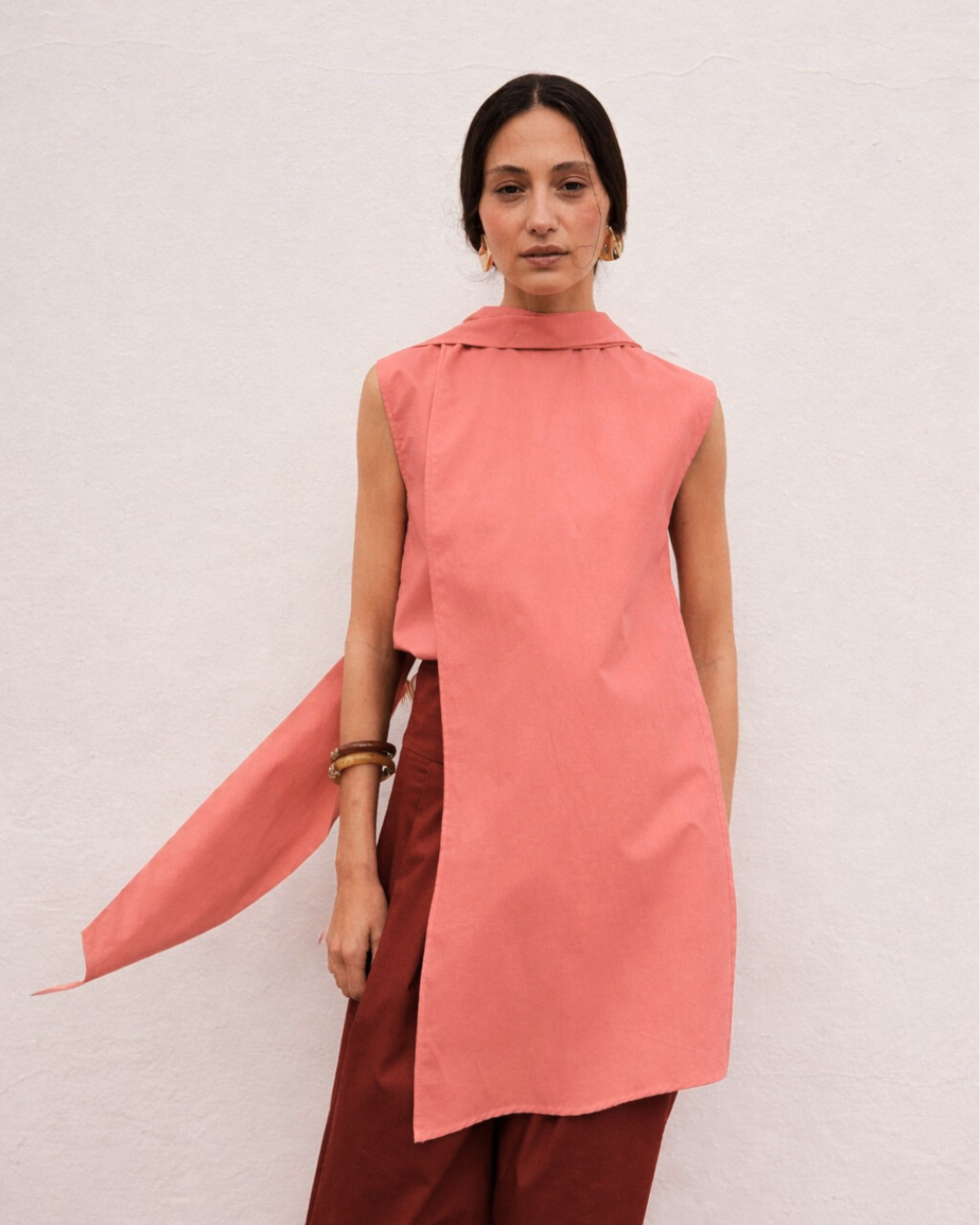 La camisa perfecta para tu evento. Añade elegancia a tu look con nuestra camisa suelta y amplia, diseñada para ofrecer un estilo relajado y moderno. Presenta una abotonadura frontal en el cuello y un cuello ligeramente alto, que aporta un toque sofisticado y versátil, perfecto para usar sola o combinada con capas y accesorios.