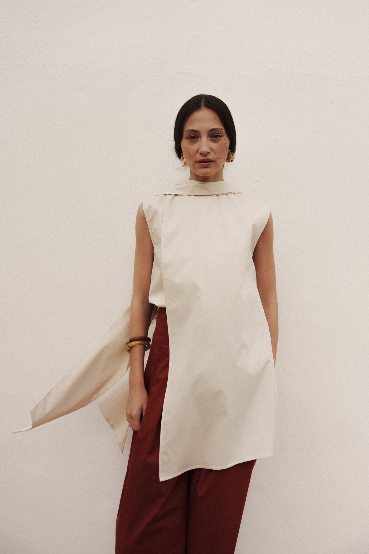 La camisa perfecta para tu evento. Añade elegancia a tu look con nuestra camisa suelta y amplia, diseñada para ofrecer un estilo relajado y moderno. Presenta una abotonadura frontal en el cuello y un cuello ligeramente alto, que aporta un toque sofisticado y versátil, perfecto para usar sola o combinada con capas y accesorios.